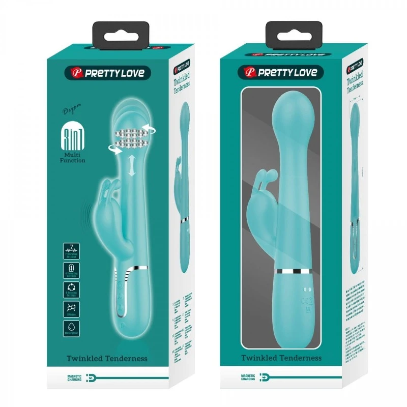 Pretty Love, model Dejon, wyróżnia się nie anatomicznym, opływowym kształtem, gładkim, przyjaznym dla skóry silikonem oraz kilkoma trybami wibracji i rotacji. Wodoodporna konstrukcja i łatwe do czyszczenia wykończenie zwiększają komfort użytkowania i higienę.