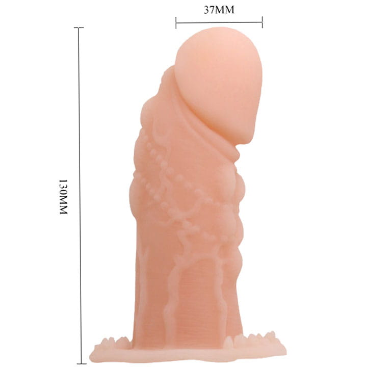 Odkryj nowe możliwości rozkoszy z nakładką na penisa, która podnosi doznania seksualne Twojej partnerki do nieba! Ta innowacyjna nakładka nie tylko stymuluje pochwę miękkimi wypustkami, ale także pogrubia penisa o imponujące 20%.
