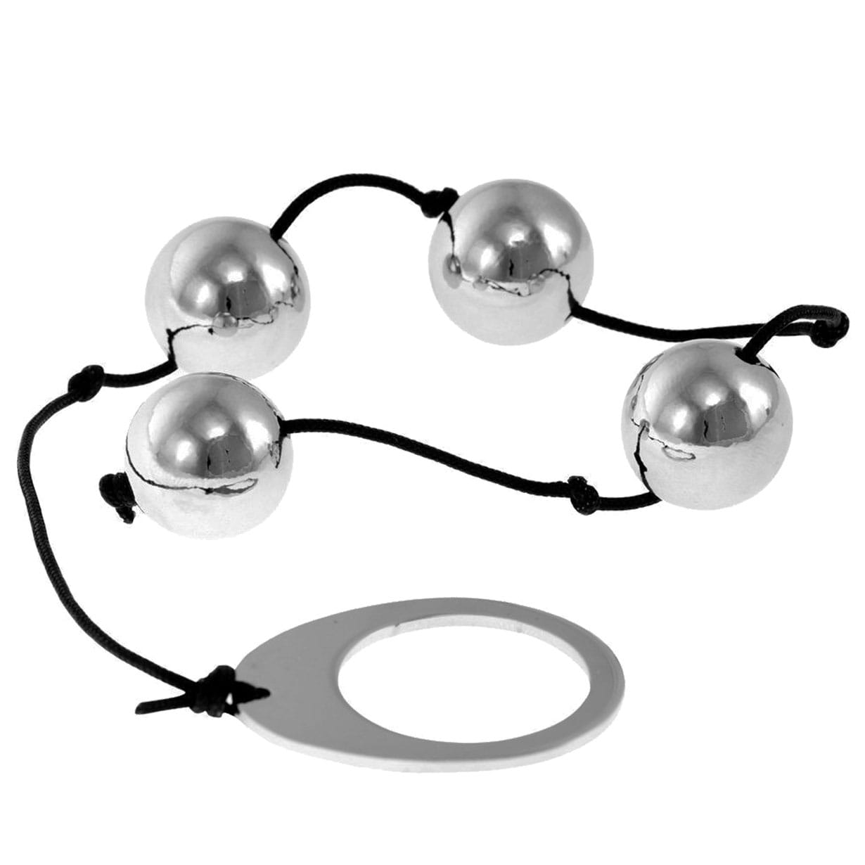 Małe lecz ciężkie kulki z polerowanej stali nierdzewnej, cztery kulki analne połączone są ze sobą mocną linką nylonową, na jej końcu znajduje się uchwyt. Niewielki przekrój tych koralików analnych ułatwia wprowadzenie a metalowe kółko pomoże kontrolować wyjęcie kulek.