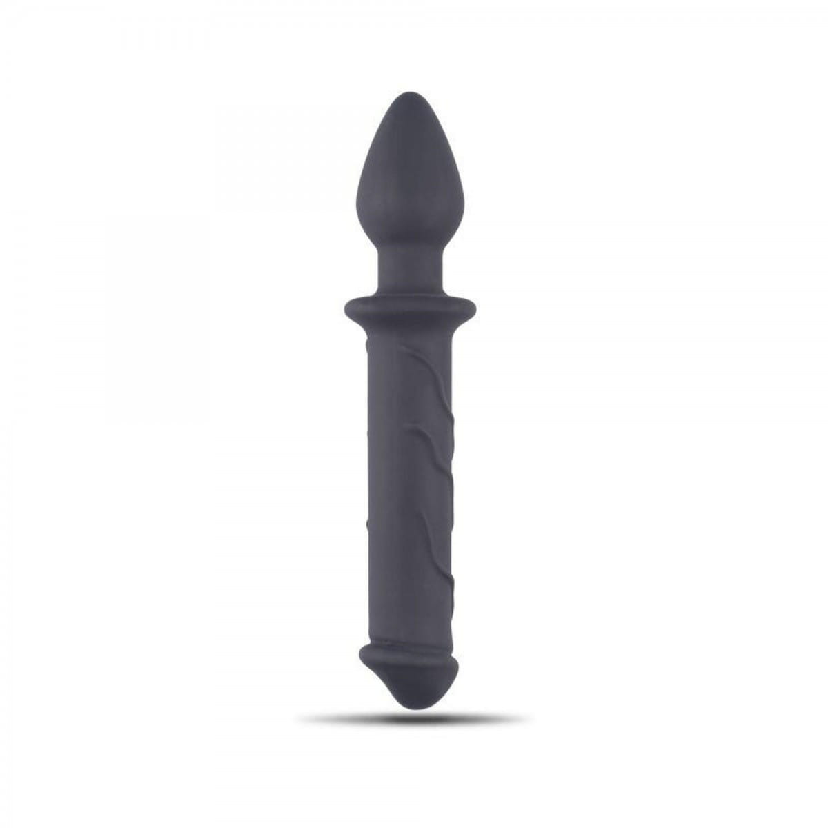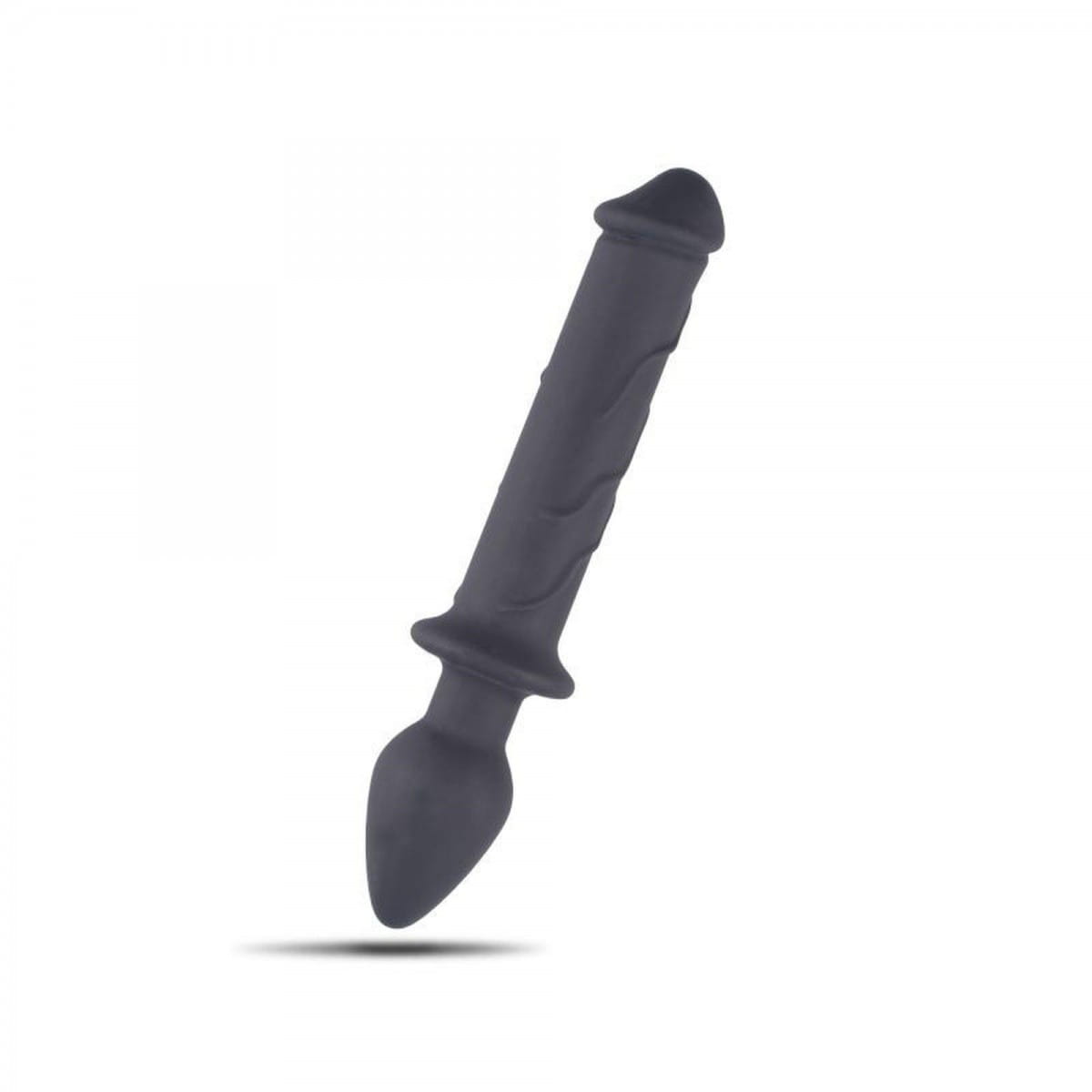 Asymetryczny design z dwoma różnymi końcówkami – jedna przypominająca korek analny, druga o kształcie prostego penisa.