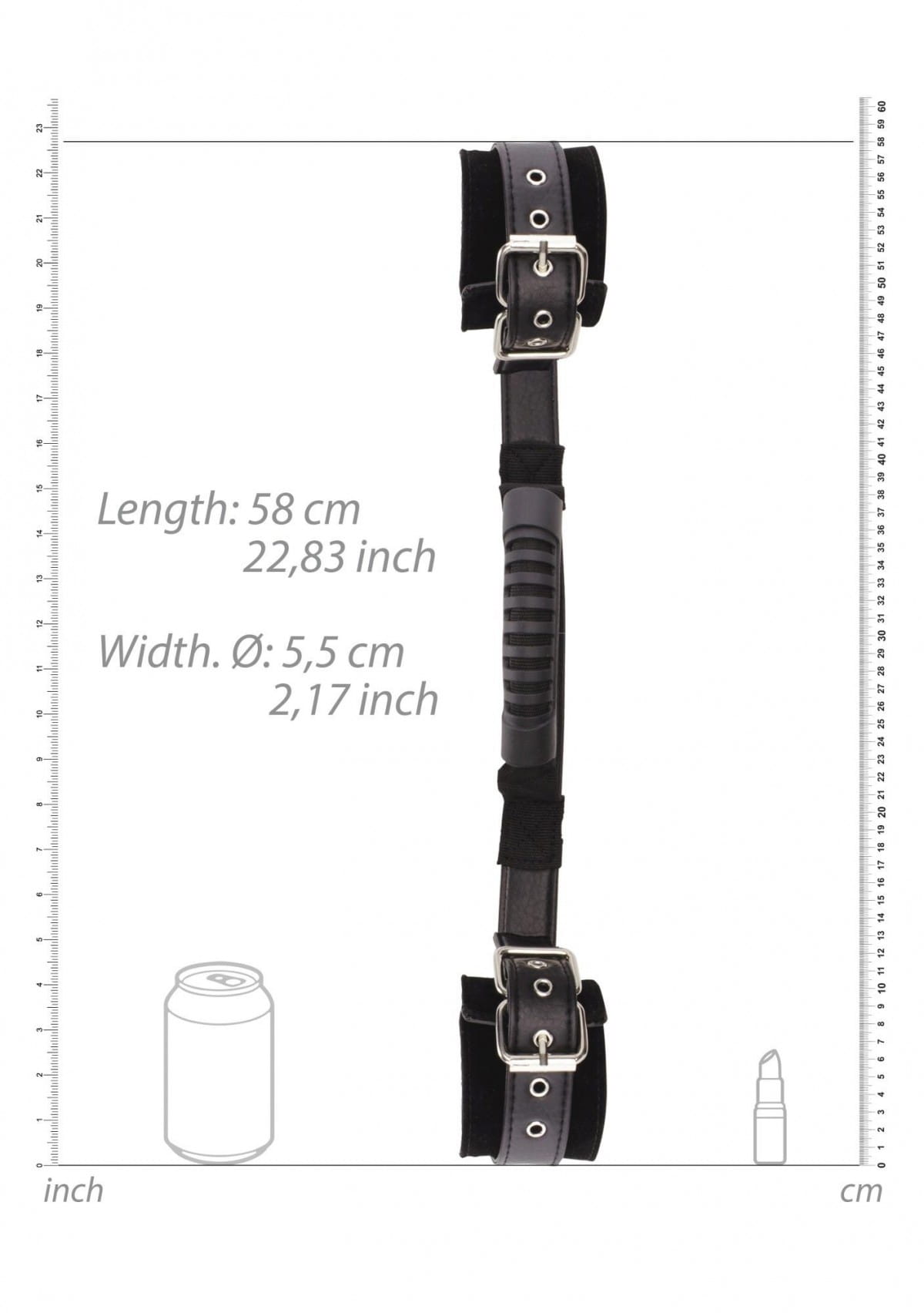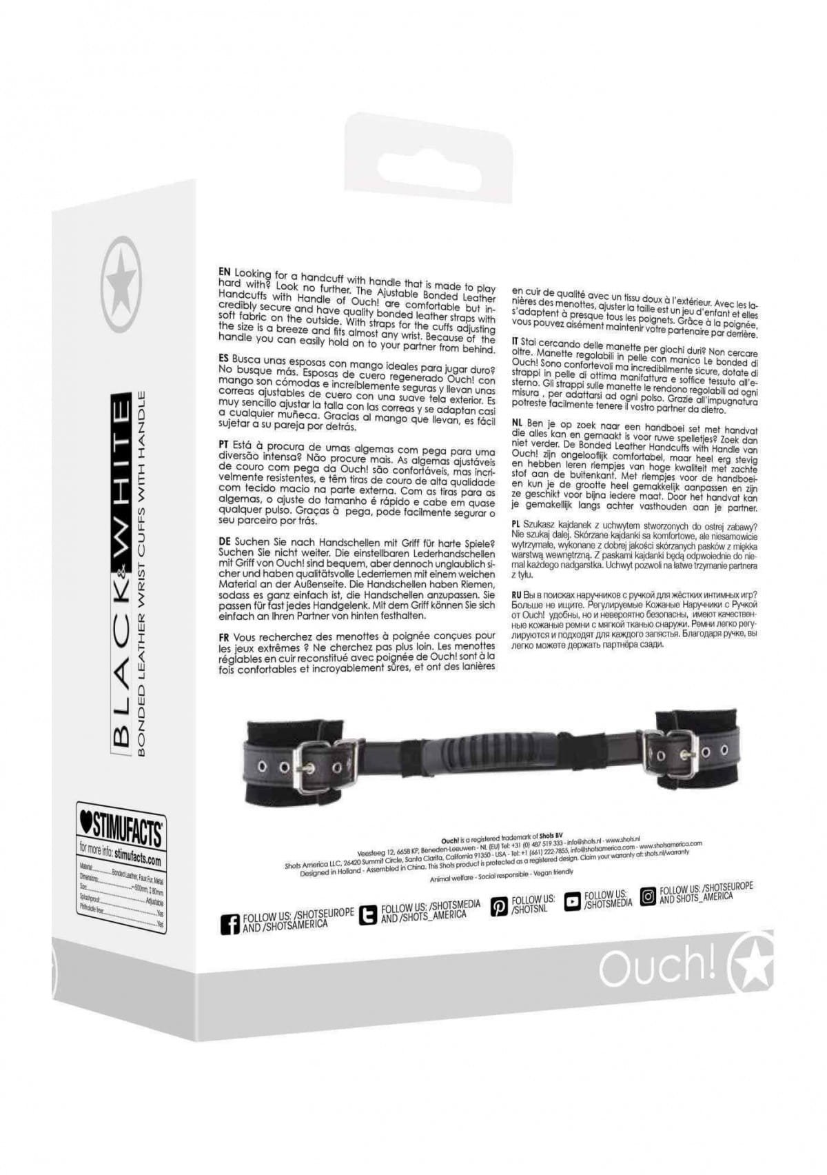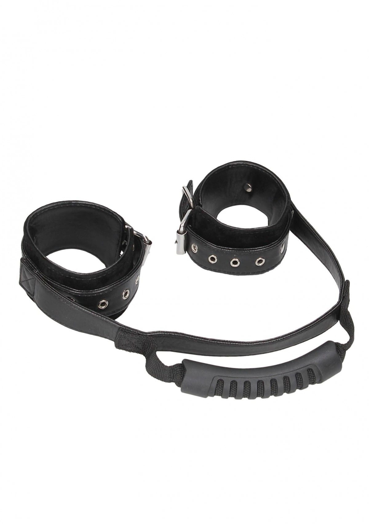 Co sprawia, że te kajdanki są wyjątkowe? Długi pas łączący rękawy kajdanek wyposażony w specjalny uchwyt do trzymania partnera od tyłu zapewniający stabilność i kontrolę.