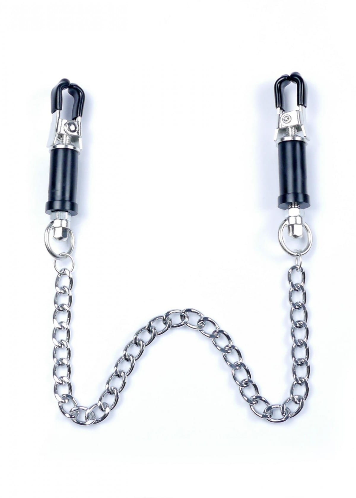 Odkryj ekscytujący świat przyjemności z klamerkami na sutki połączonymi łańcuszkiem. Te wytrzymałe metalowe zaciski pokryte miękką gumą zapewnią Ci kontrolowany ucisk, który dostarczy słodki podniecający ból, prowokując subtelne reakcje po zwolnieniu. Idealne zarówno dla początkujących, jak i doświadczonych użytkowników, te zaciski są łatwe w regulacji poprzez obracanie górnej części klamry, co pozwala dostosować siłę ucisku do Twoich preferencji.