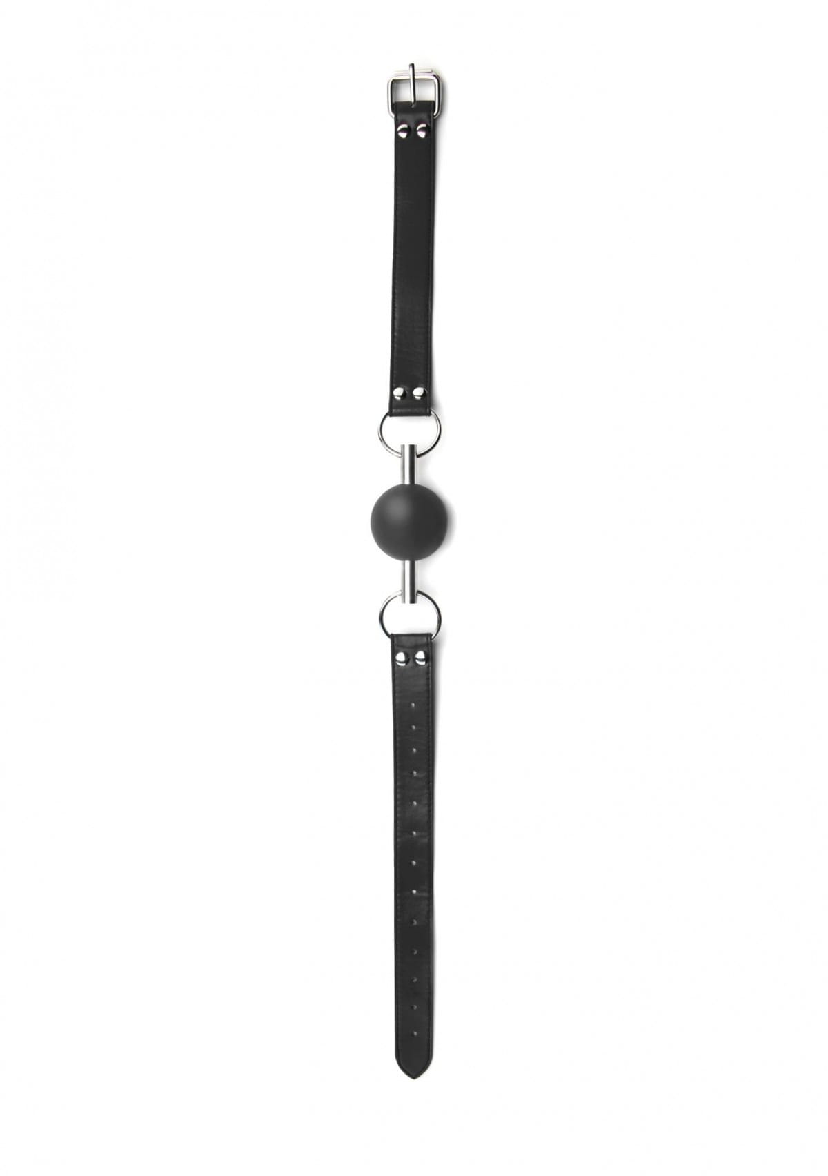Średnica piłeczki wynosi około 2,5 cm, co sprawia, że produkt jest łatwy w utrzymaniu czystości. Knebel i pasek wykonane są z czarnej skóry, metalu i gumy, co dodaje mu eleganckiego wyglądu. Znajduje się kilka otworów umożliwiających oddychanie, a duży zakres regulacji paska zapewnia komfort użytkowania zarówno kobietom, jak i mężczyznom.