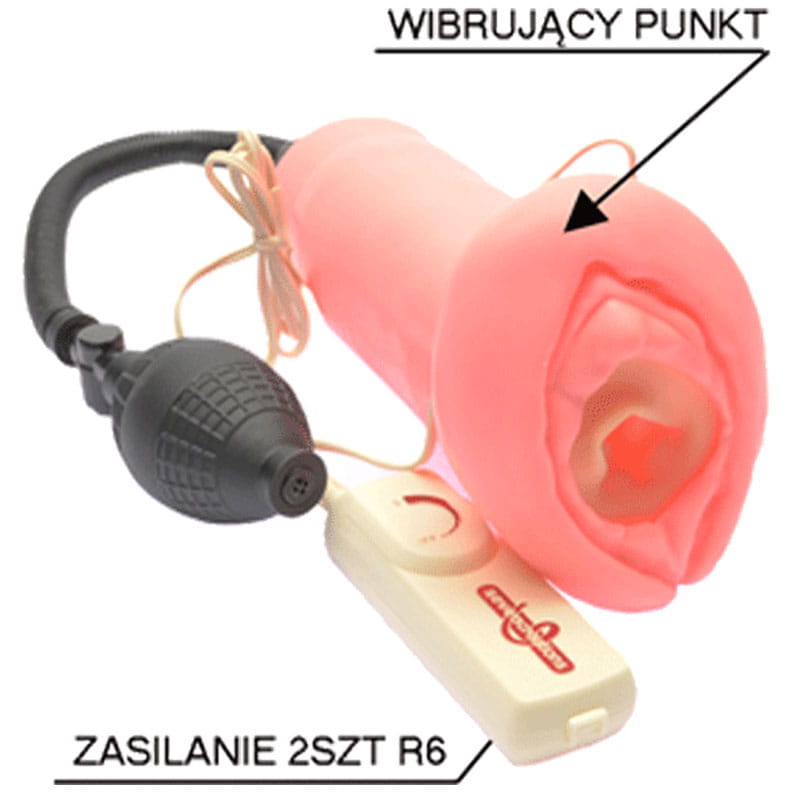 Podciśnienie wytworzone w tubie stymuluje napływ krwi do ciał jamnistych, wtedy penis zwiększa swoją objętość, robi się większy i bardziej wrażliwy na dotyk. Całą zabawę dodatkowo uprzyjemniają wibracje z silnika umieszczonego w pobliżu wejścia do pochwy, dla jeszcze większej rozkoszy korzystaj z żelu poślizgowego.
