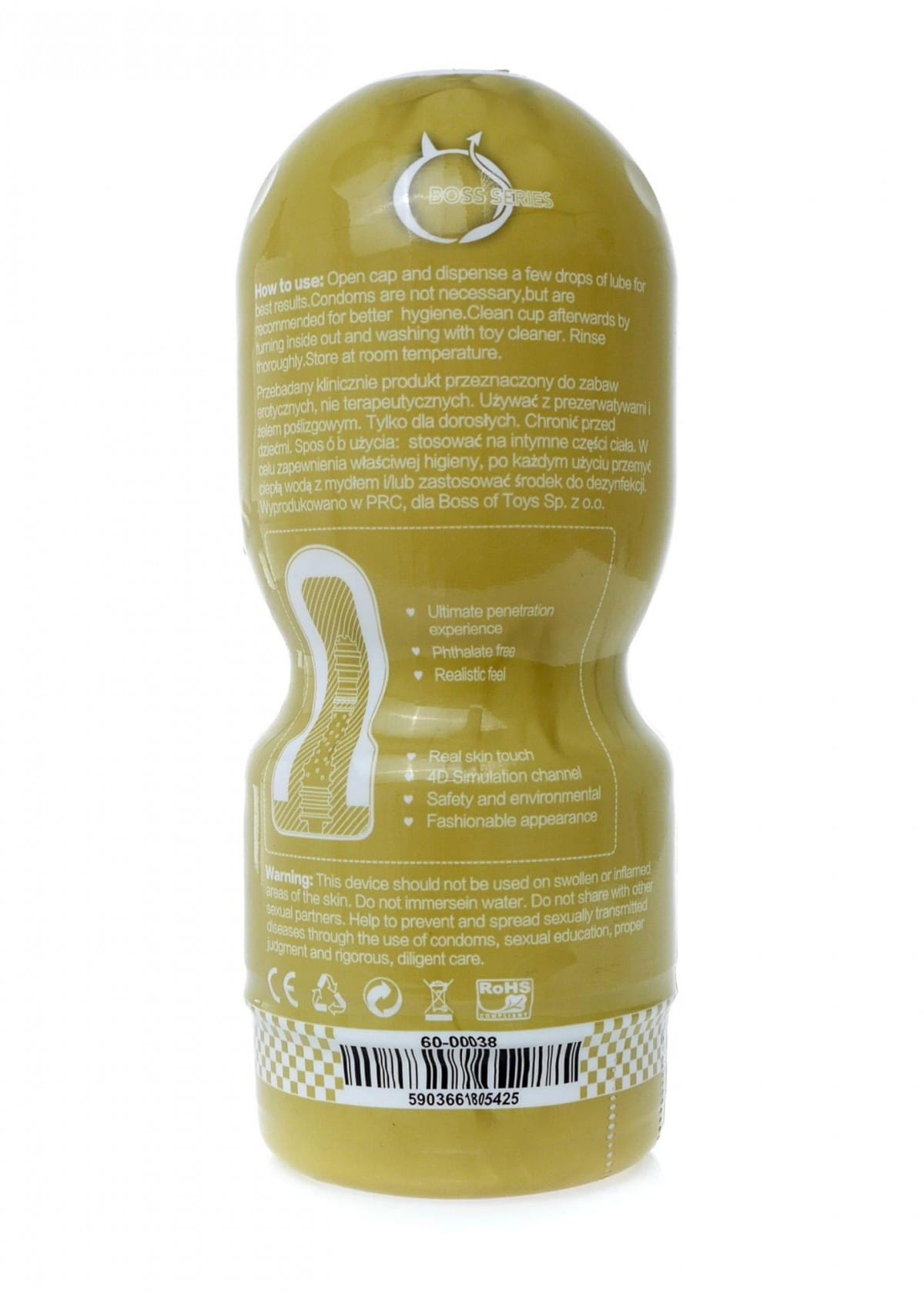 Dodatkowe informacje: masturbator posiada kolorystykę przypominającą ciało, co sprawia, że jest przyjemny w dotyku. Pasuje na penisa o długości do 17 cm i maksymalnej średnicy około 4 cm. Wykonany z miękkiego i bezpiecznego dla ciała materiału TPR, nie uczula i nie wymaga użycia prezerwatywy.