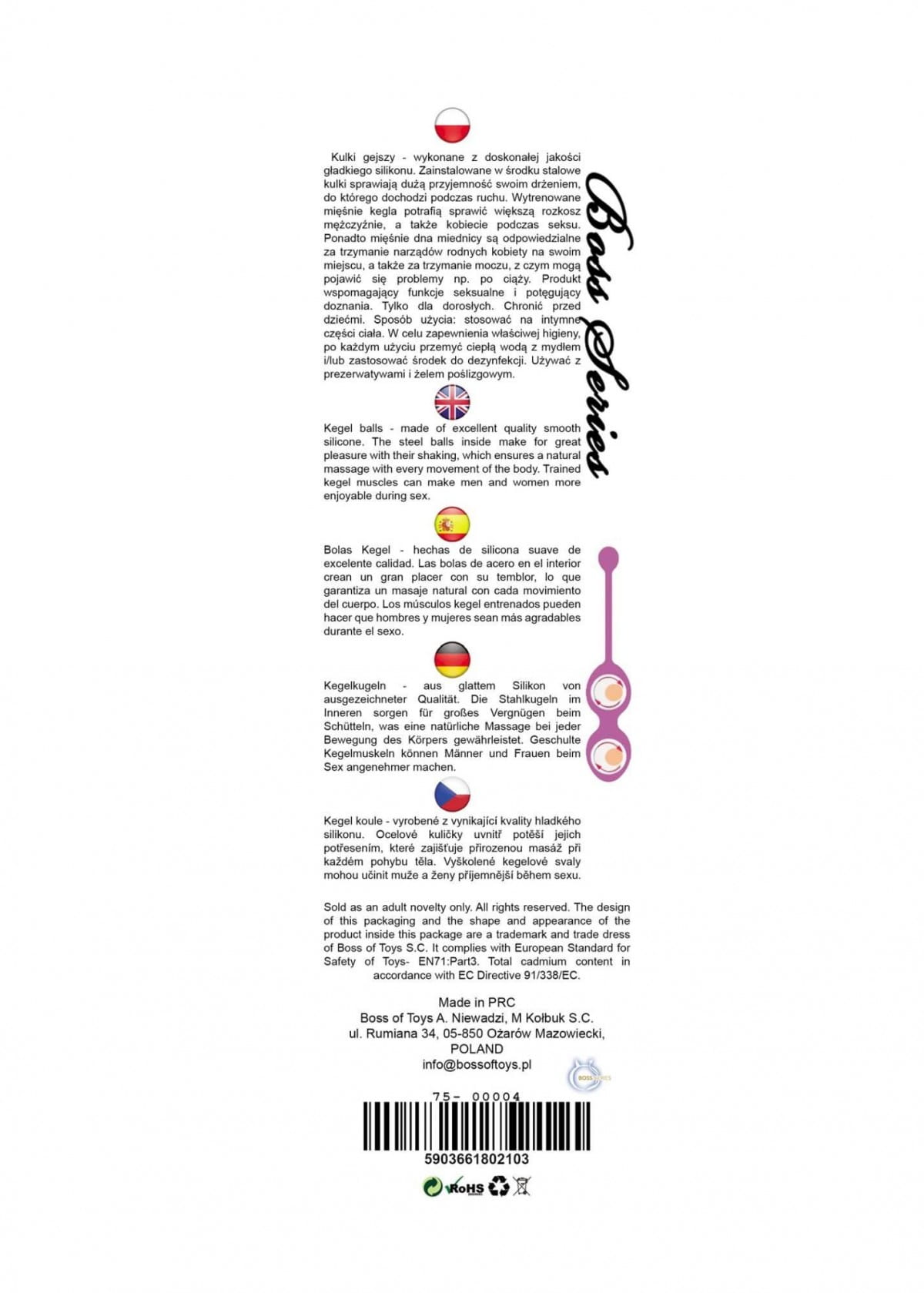 Jak dbać o produkt: Przed pierwszym użyciem i po każdym kolejnym, należy umyć kulki w letniej wodzie z dodatkiem delikatnego mydła. W przypadku dyskomfortu, użyj żelu poślizgowego na bazie wody, aby ułatwić aplikację.