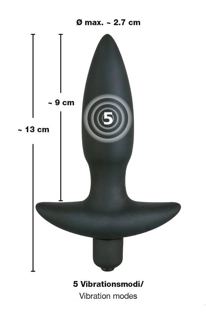 Niezwykle cichy specjalista od rozpieszczania! Czarna wtyczka analna z 5-stopniową wibracją za jednym naciśnięciem przycisku. Z uchwytem zwrotnym.