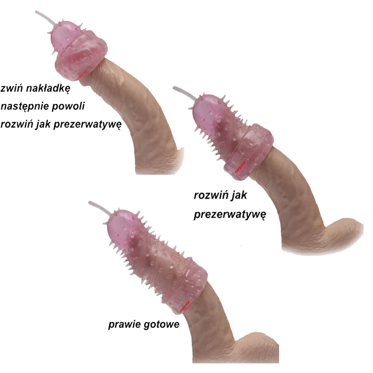 Ta wyjątkowa nakładka, przypominająca prezerwatywę, pokryta jest licznie rozmieszczonymi miękkimi wypustkami, które delikatnie drażnią wnętrze pochwy, zapewniając intensywne stymulacje. Jej miękkość i elastyczność sprawiają, że idealnie przylega do penisa, pozwalając na pełne doświadczenie nowych doznań podczas zbliżenia.