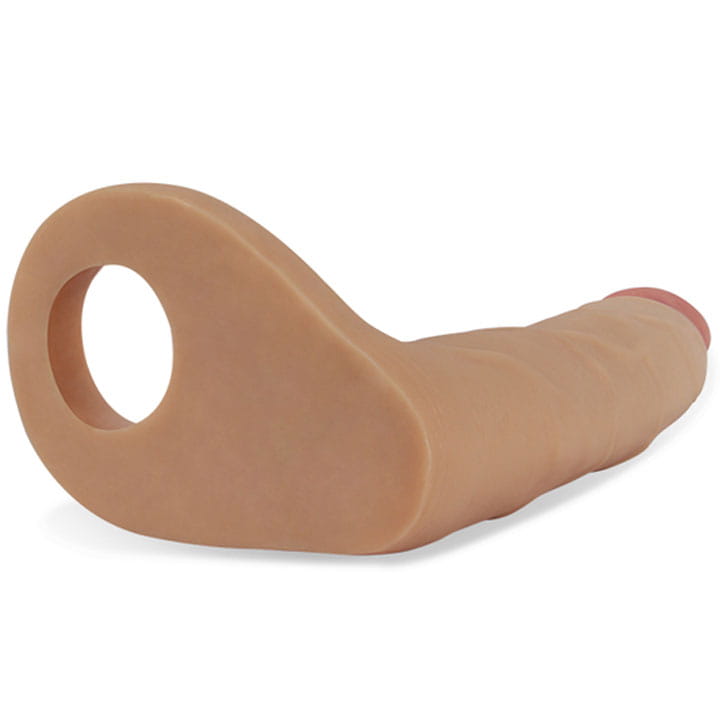 Smukłe dildo zaprojektowane do odgrywania pozycji z podwójną penetracją. Dzięki elastycznemu pierścieniowi można je założyć na penisa w sposób umożliwiający partnerowi dostęp do dwóch dziurek. Penis analny wykonany jest z delikatnego i miękkiego materiału, w dotyku jest jak skóra, sztuczny penis z cyber skóry ma sztywność naśladującą członka w erekcji. Spiczasty kształt główki ułatwi wprowadzenie a niewielki przekrój umożliwi stosunek analny początkującym parą. Pierścień jest rozciągliwy i ma dwa zadania utrzymanie dildo i wzmocnienie erekcji, zaciśnie się na członku o średnicy od 3,5 do 5 cm.